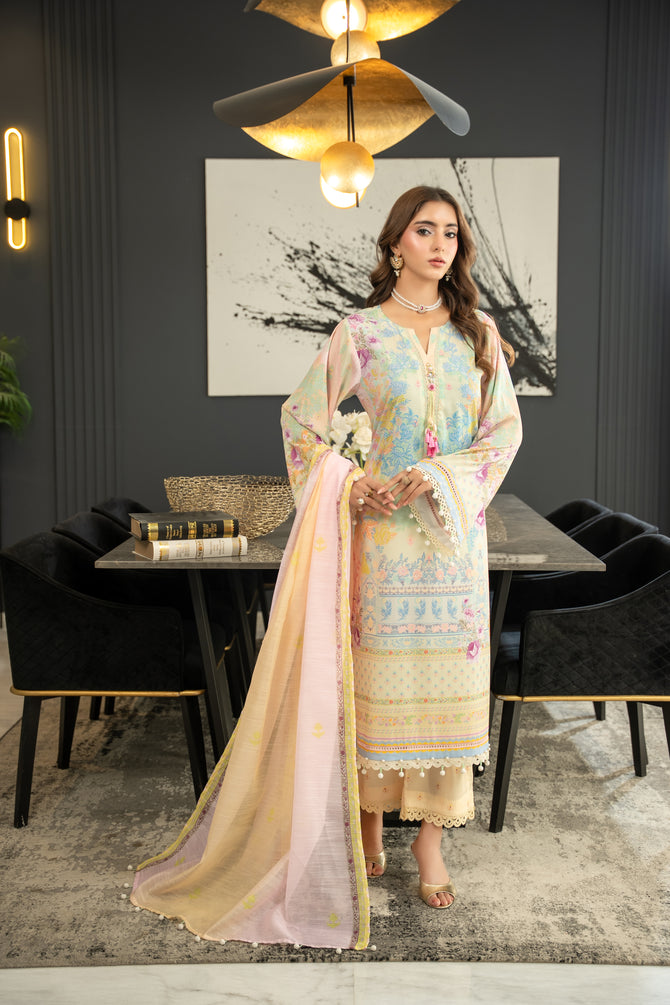 Semi-formal fabrics include cotton, yarn-dyed, and many other fabrics like this. Shop ladies unstitched suits online in your favorite design, and color, and make an elevation by incorporating new ladies' dresses.