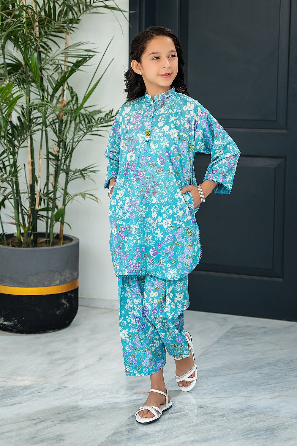 2 Pc Printed Cotton Lawn Suit For Girl