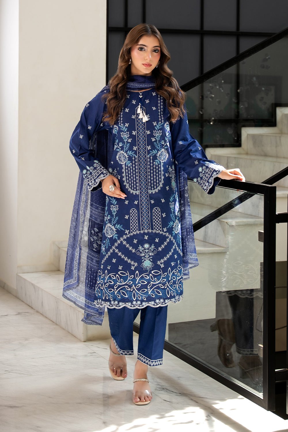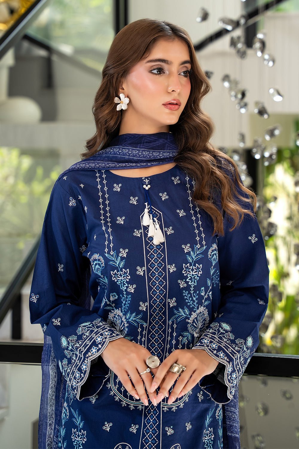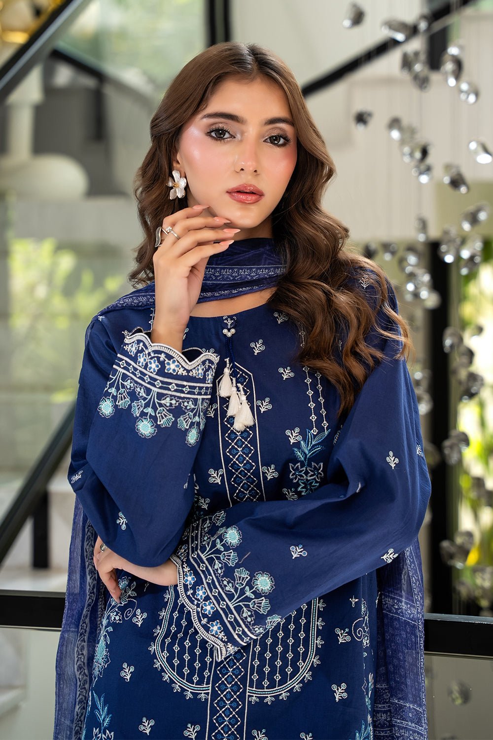 3 Pc Dyed Embroidered Cambric Unstitched Suit