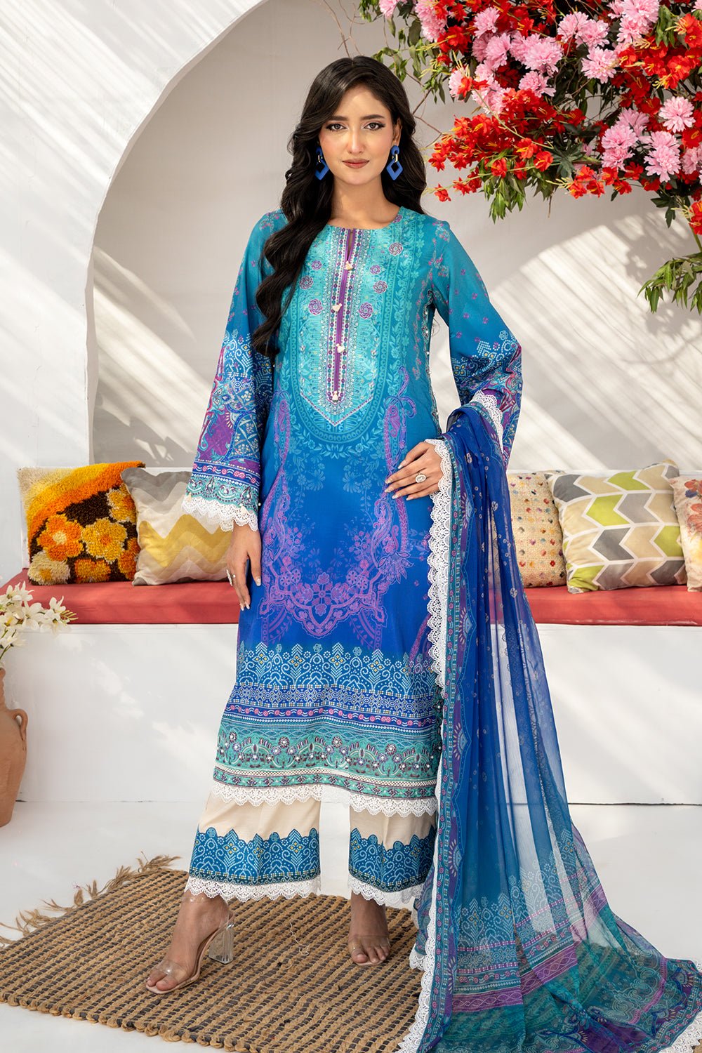 3 Pc Printed Embroidered Raw Silk Unstitched Suit