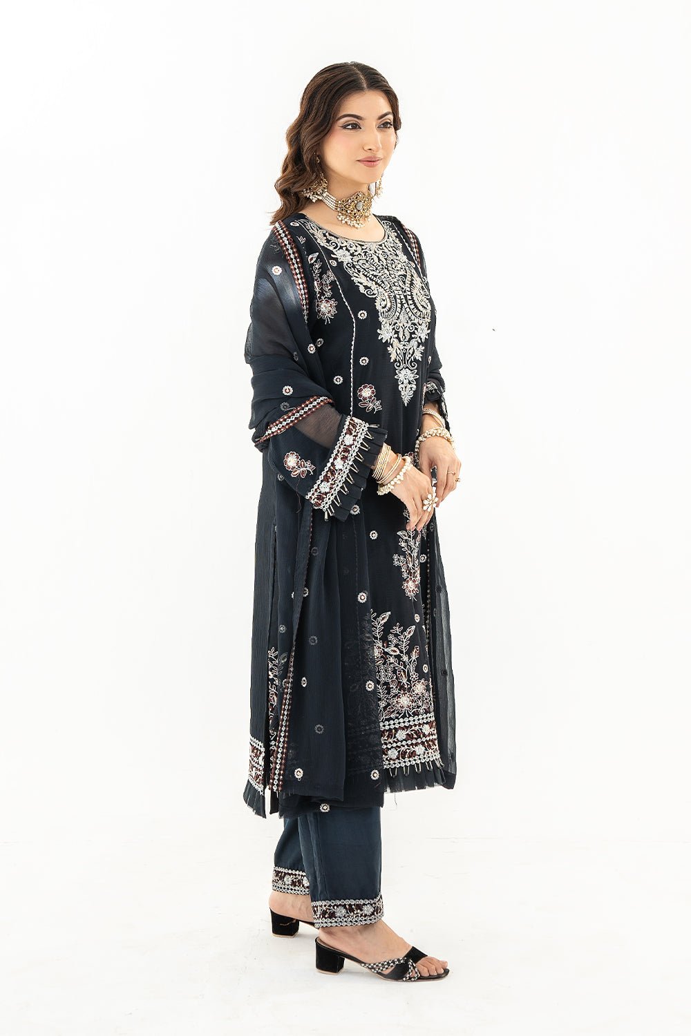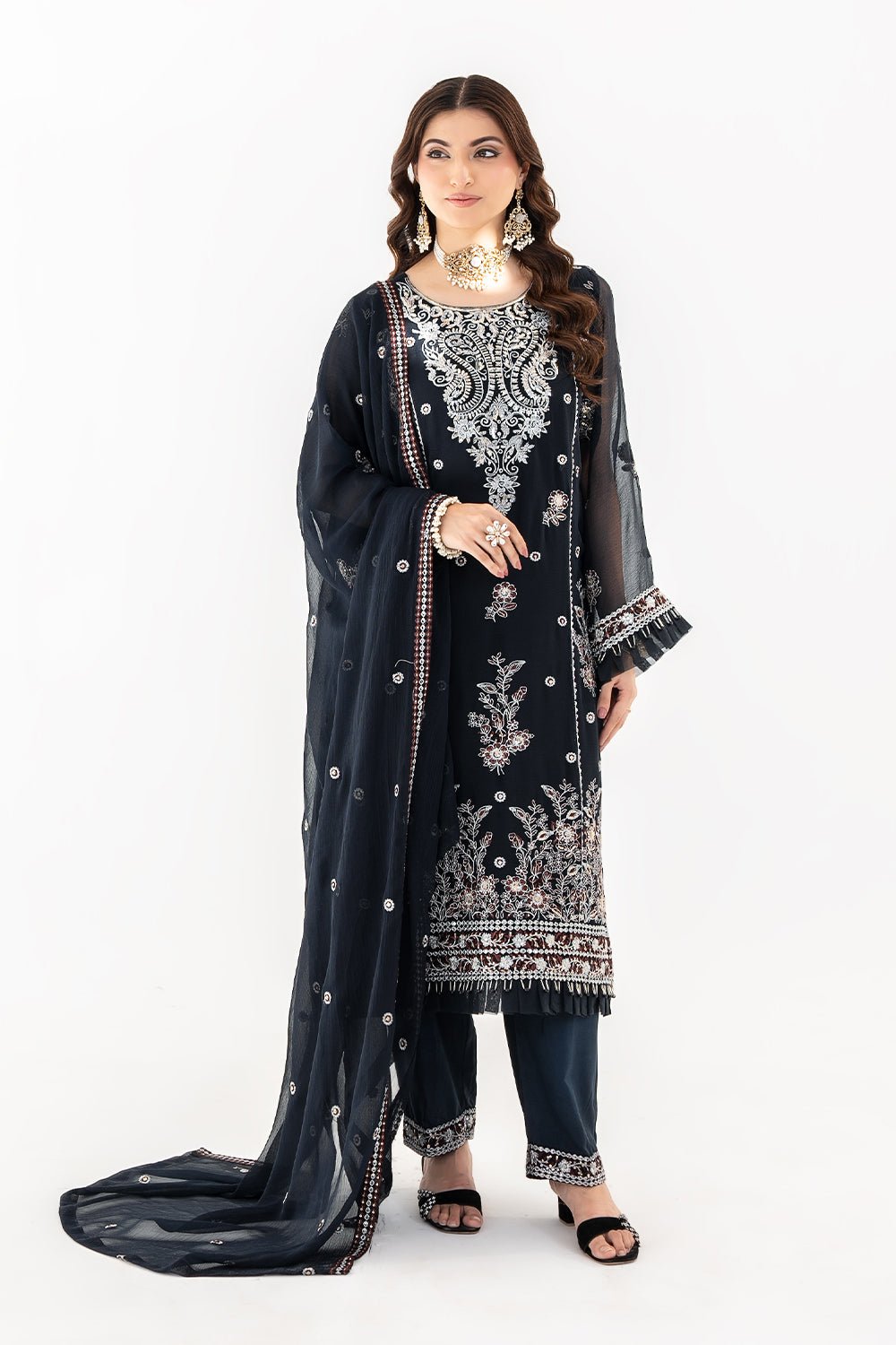 3 Pc Embroidered Chiffon Luxury Unstitched Suit