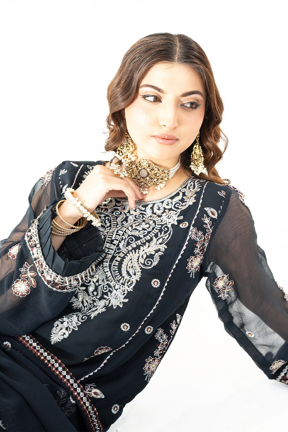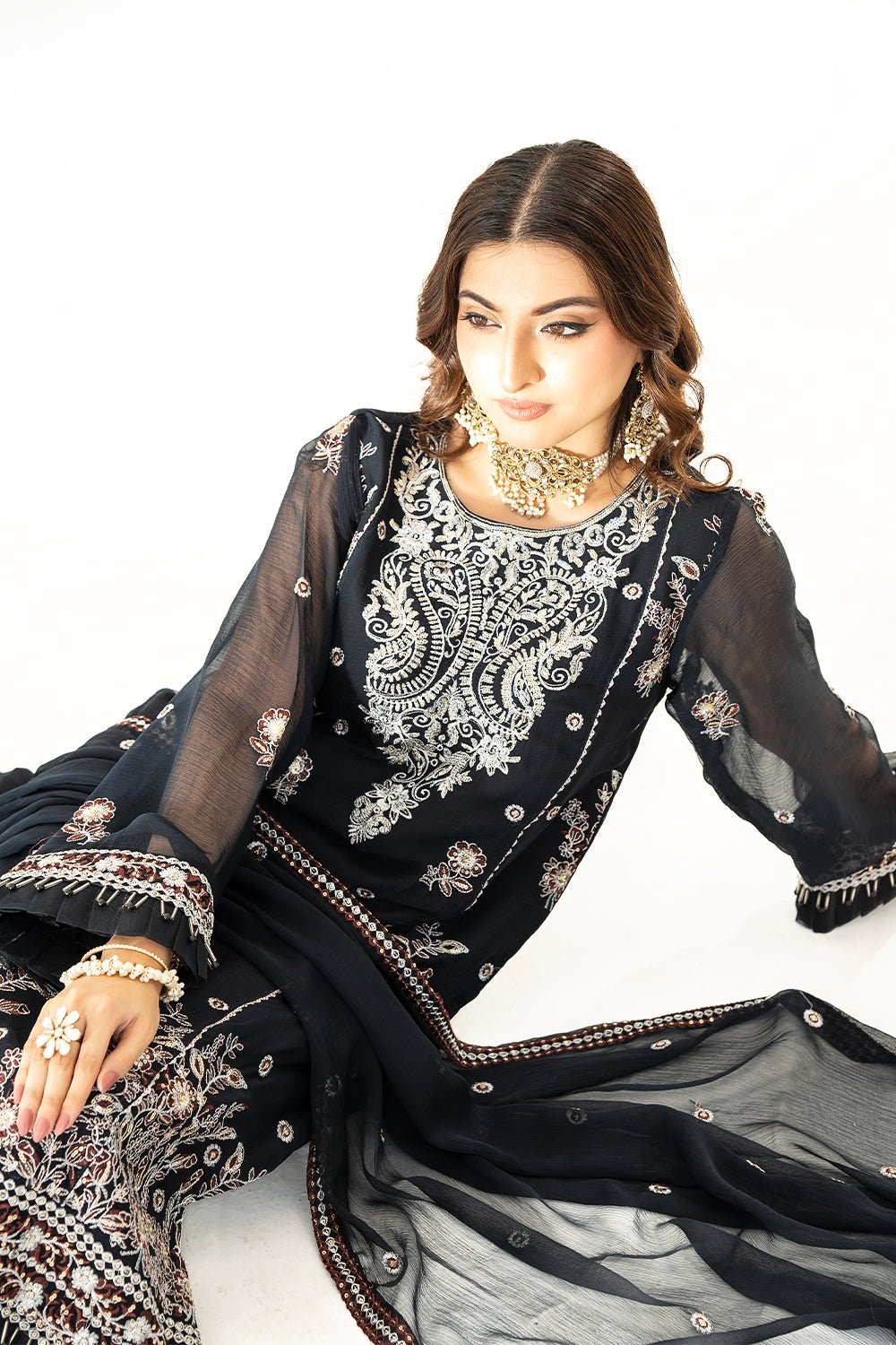 Embroidered Front Left & Right Panel On Chiffon