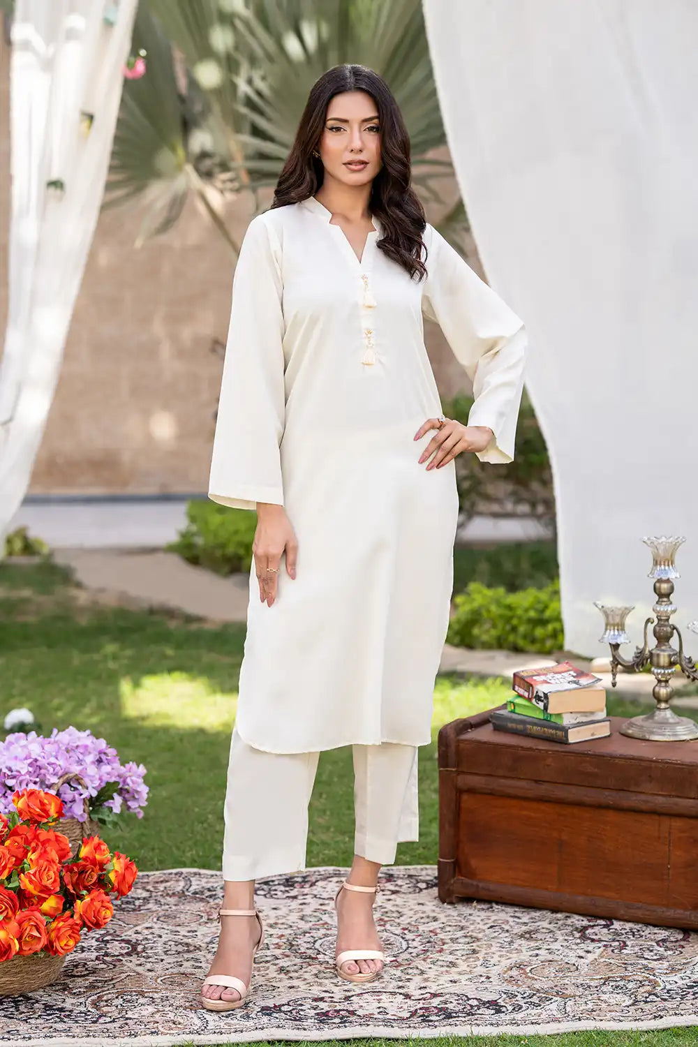 Upgrade your wardrobe with this beautifully crafted 2 piece suit, designed for effortless elegance and everyday comfort. This outfit includes a stylish shirt paired with a matching trouser, creating a graceful and sophisticated look.