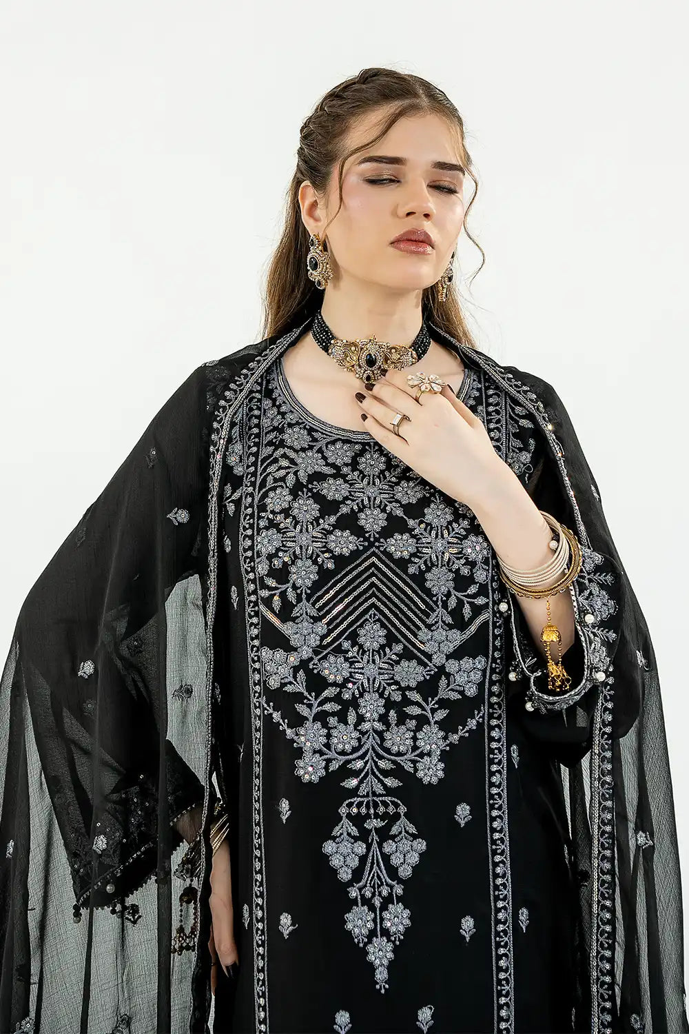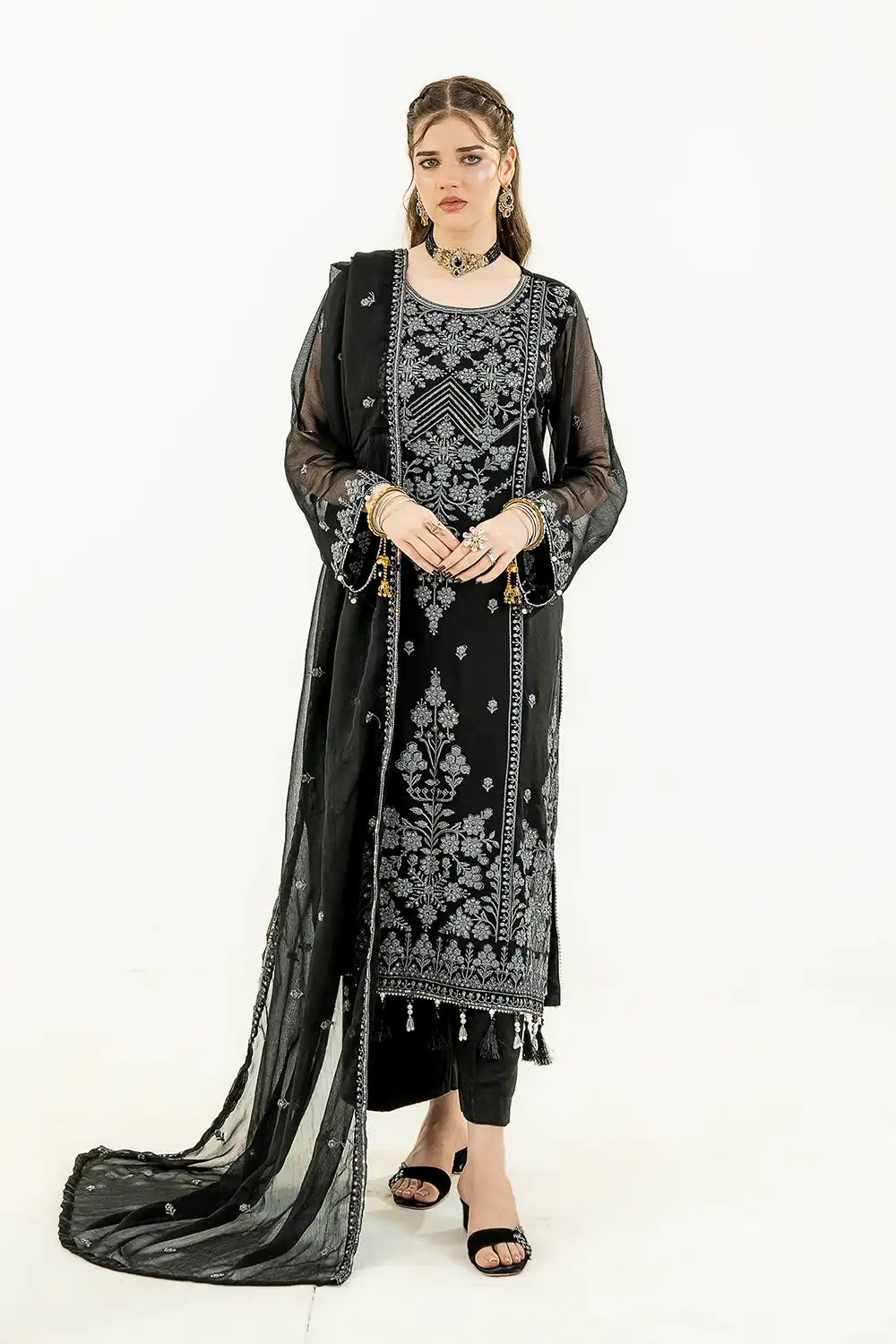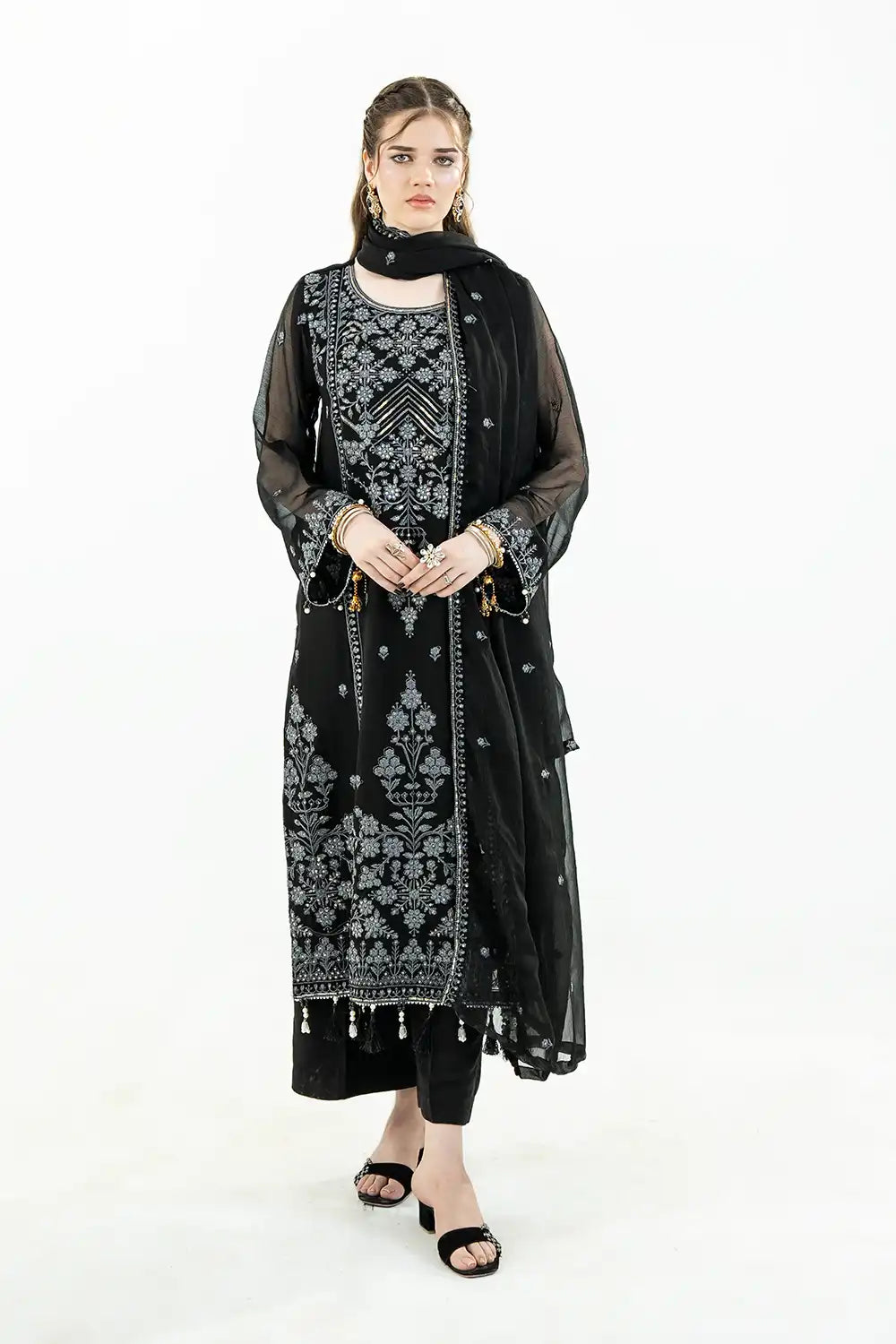 Embroidered Front Left & Right Panel On Chiffon