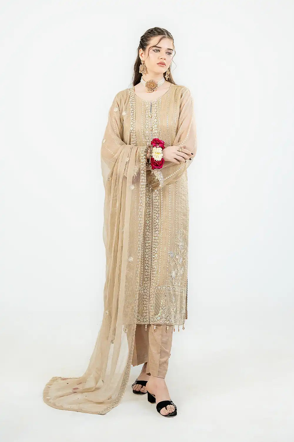 - Embroidered Front Left & Right Panel On Chiffon