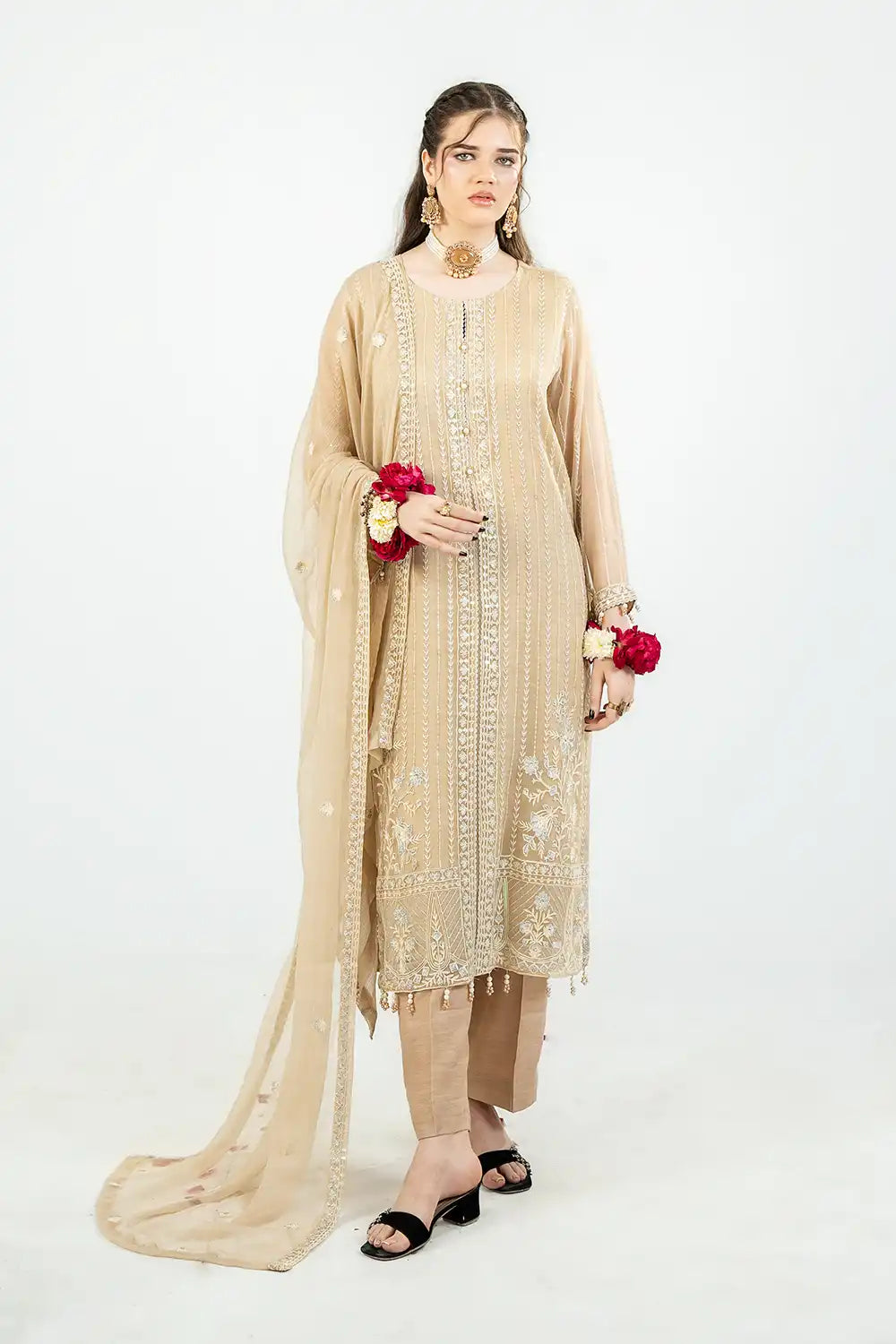 3 Piece - Embroidered Chiffon Suit